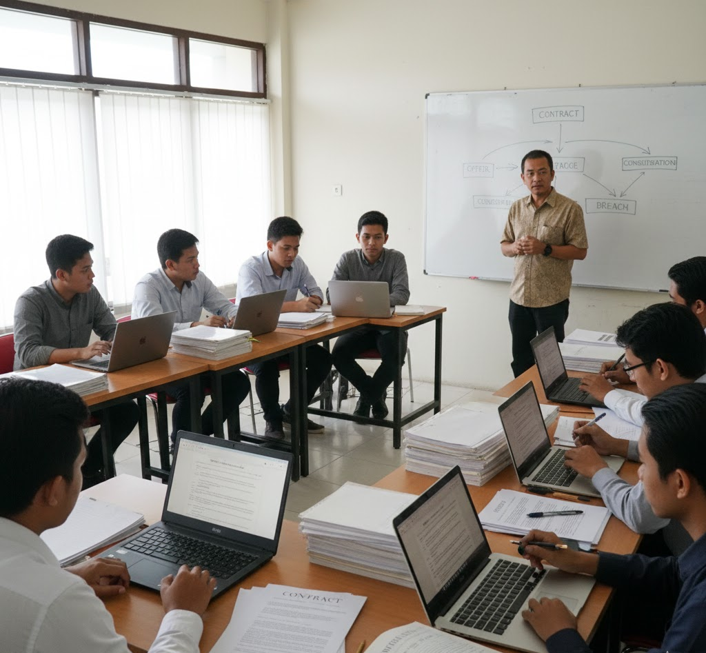 Mahasiswa tidak hanya menghafal teori, tetapi juga belajar bagaimana menyusun, menegosiasikan, dan menganalisis kontrak.