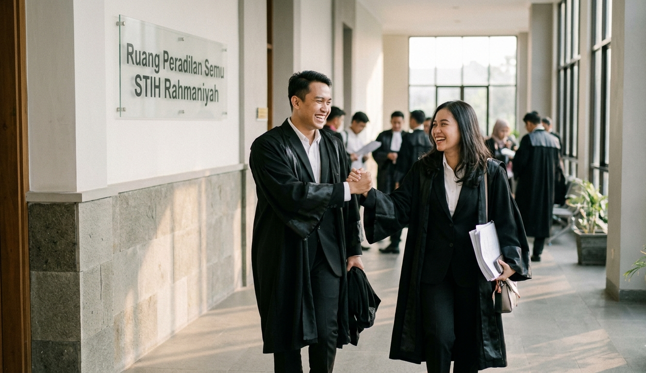 Dunia pendidikan hukum di Indonesia terus bertransformasi untuk menghasilkan lulusan yang tidak hanya menguasai teori di atas kertas, tetapi juga memiliki ketajaman dalam berpraktik di meja hijau. Salah satu pilar utama dalam kurikulum pendidikan hukum adalah pelaksanaan Simulasi Peradilan Semu yang dirancang untuk memberikan pengalaman nyata kepada mahasiswa mengenai atmosfer persidangan. Kegiatan ini menjadi ajang pembuktian dalam mengasah praktik kemahiran hukum bagi mereka yang bersiap meniti karier sebagai hakim, jaksa, maupun advokat profesional di masa depan. Khusus di lingkungan akademik STIH Rahmaniyah Sekayu, program ini telah terintegrasi secara sistematis untuk memastikan setiap pelajar mampu menguasai hukum acara dengan sangat presisi. Melalui pendekatan yang komprehensif, mahasiswa diharapkan mampu memahami dinamika penyelesaian perkara di wilayah Sekayu dan sekitarnya, sehingga tercipta lulusan yang berintegritas dan siap menghadapi tantangan hukum yang semakin kompleks di era modern ini.